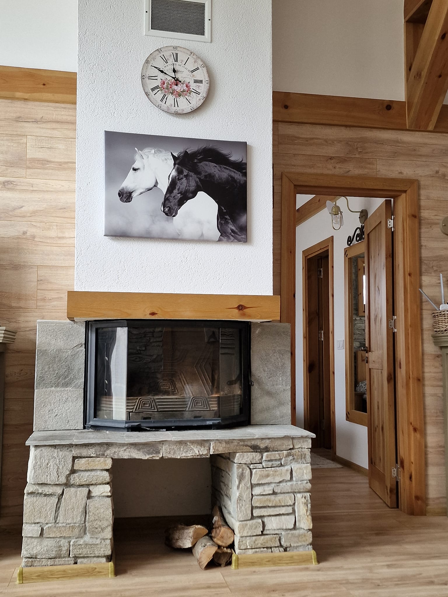 Разпределение на помещенията: входно антре със сауна, просторна дневна с камина, трапезарна част и кухненски бокс, три спални, едната е мастър бедрум с баня и тоалетна към нея, втора баня с тоалетна, веранда с барбекю и голям двор 215 кв.м. От верандата и дневната на къщата се открива прекрасна гледка към Пирин планина.