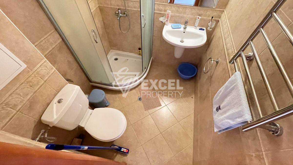 Ексел Пропърти предлага за продажба двустаен апартамент в комплекс Диамант. Имота е светил и слънчев, намира се на втория етаж и има обща площ от 68 кв.м. Предлага се за продажба напълно обзаведен и разполага с входно антре, всекидневна с кухненски бокс, спалня, баня и два балкона. Кухнята е снабдена с фурна, котлони, аспиратор, хладилник и пералня. Всекидневната е обзаведена с разтегателен диван, разтегателен фотьойл, маса за хранене с четири стола и ТВ сет. В спалнята ще намерите двойно легло с нощни шкафчета, гардероб и тоалетка. Банята е с душ кабина, на разположение са два климатик. Терасите са две с добър размер, като тази към всекидневната е със страхотна гледка морето. Имота предоставя отлична възможност за отдаване под наем. Ползван е малко, намира се в отлично състояние и е готов да посрещне новите си собственици.