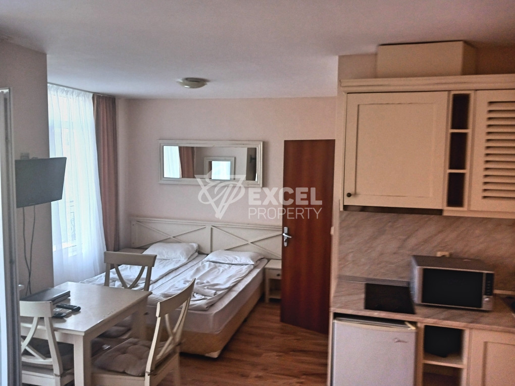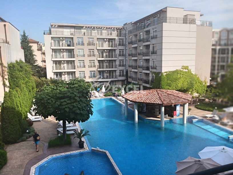 Предлагаме за продажба напълно оборудван апартамент разположен на 3-ти етаж в комплекс Даун Парк, който се състои от всекидневна с обзаведен кухненски бокс, кът във всекидневната със спалня, отделна спалня , две обзаведени бани с мивки, бойлери, душ кабини и тоалетни, има и тераса с гледка към басейна на комплекса. Жилищната площ на имота 44,13 кв.м., общи части: 9,19 кв.м., обща площ - 53,32м2. Апартаментът е светъл, разполага с един климатик и всичко необходимо за пълноценен престой.