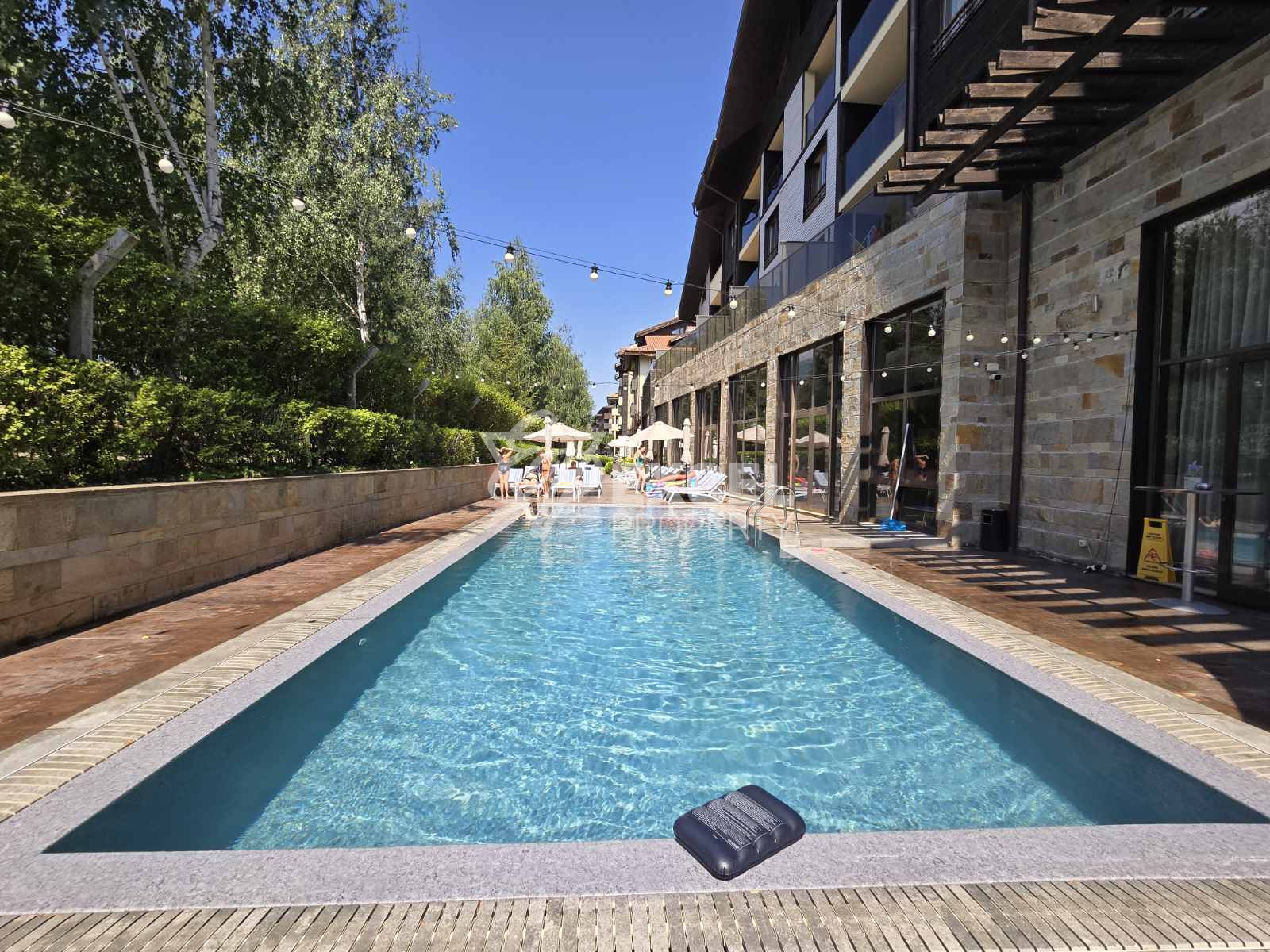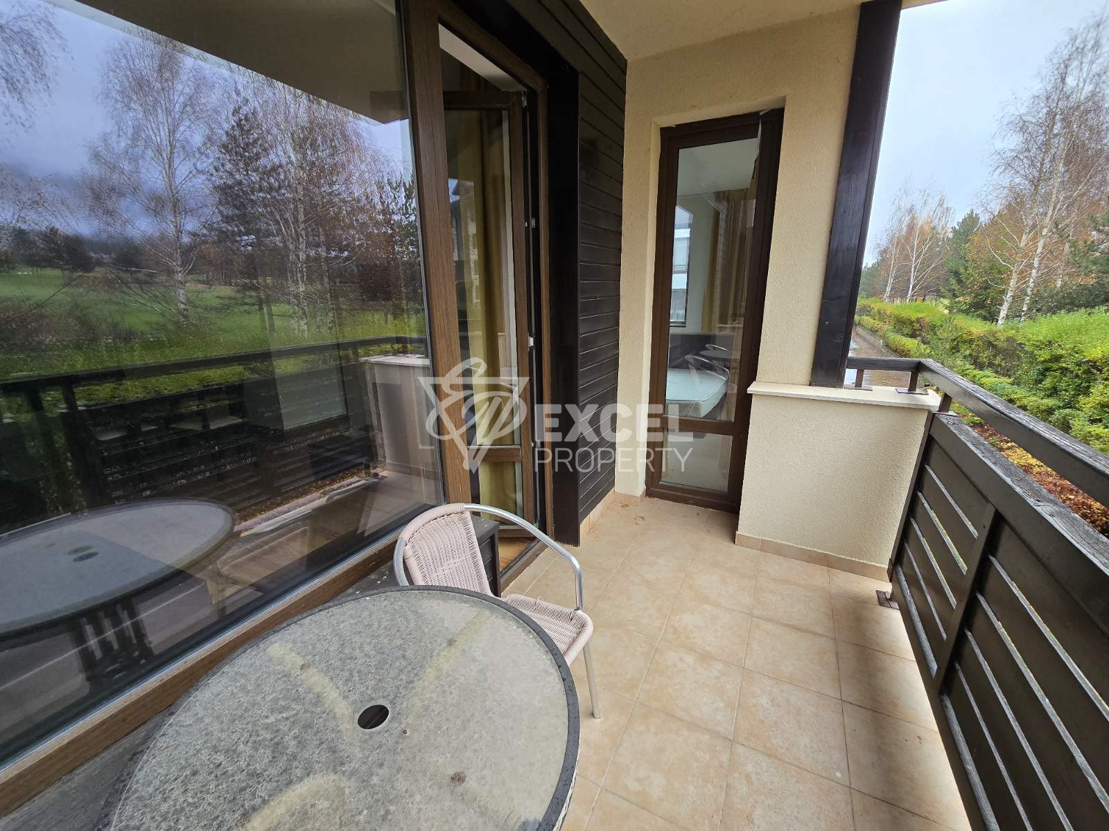 Имотът разполага с входно антре, спалня, баня с тоалетна и вана, просторна дневна с оборудвана кухня, място за отдих с мека мебел, тераса с изглед към Пирин планина и голф игрището. И двете стаи имат излаз към терасата.