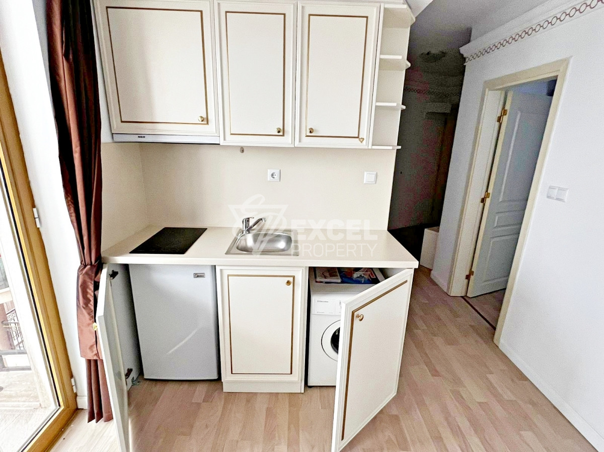 Жилището е напълно обзаведено и готово за нанасяне или за отдаване под наем, като инвестиционен имот. Комплексът Голдън Рейнбоу разполага с денонощна охрана, видео наблюдение, ограничен достъп, техническа поддръжка, поддръжка на общите части, озеленени площи, басейн с шезлонги около него, детски басейн, pool-бар, ресторант, супермаркет и паркинг зона.