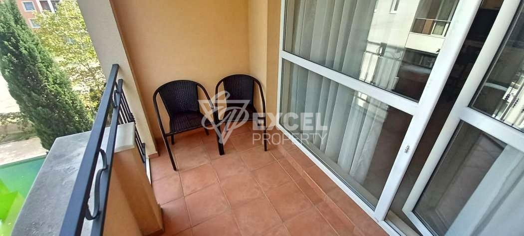 Имотът се предлага с всички необходими уреди и мебели, като може а бъде закупен с цел последващо отдаване под наем или целогодишно живеене, предлагайки добра локация, хубава площ и отлично управление на комплекса. Разпределение: отделно входно антре- коридор, оборудвана баня с тоалетна, където има душ-кабина, пералня, бойлер и всичко необходимо; хол с трапезария и кухненска част, стая- спалня и тераса, която е достъпна от страната н всекидневната. Жилищен комплекс Слънце и Море се намира на 600 м от популярния плаж Какао бийч, на 300м., от автобусна спирка, на 25 км. до летище на град Бургас и на 3 км до стария Несебър. Целогодишно в Слънчев бряг функционират магазини за хранителни стоки, Супермаркети, Клиника, медицински център, поща, детска градина, а училища има в Несебър и град Свети Влас. Сградата е монолитно строителство, южно изложение. Комплексът разполага с целогодишна охрана, закрит паркинг със 7 места, затворена зона (входни чипове), паркинг за велосипеди, детска площадка, басейн за възрастни и деца с пързалка (през летния сезон), ресторант в комплекса (през летния сезон), сауна (целогодишно).