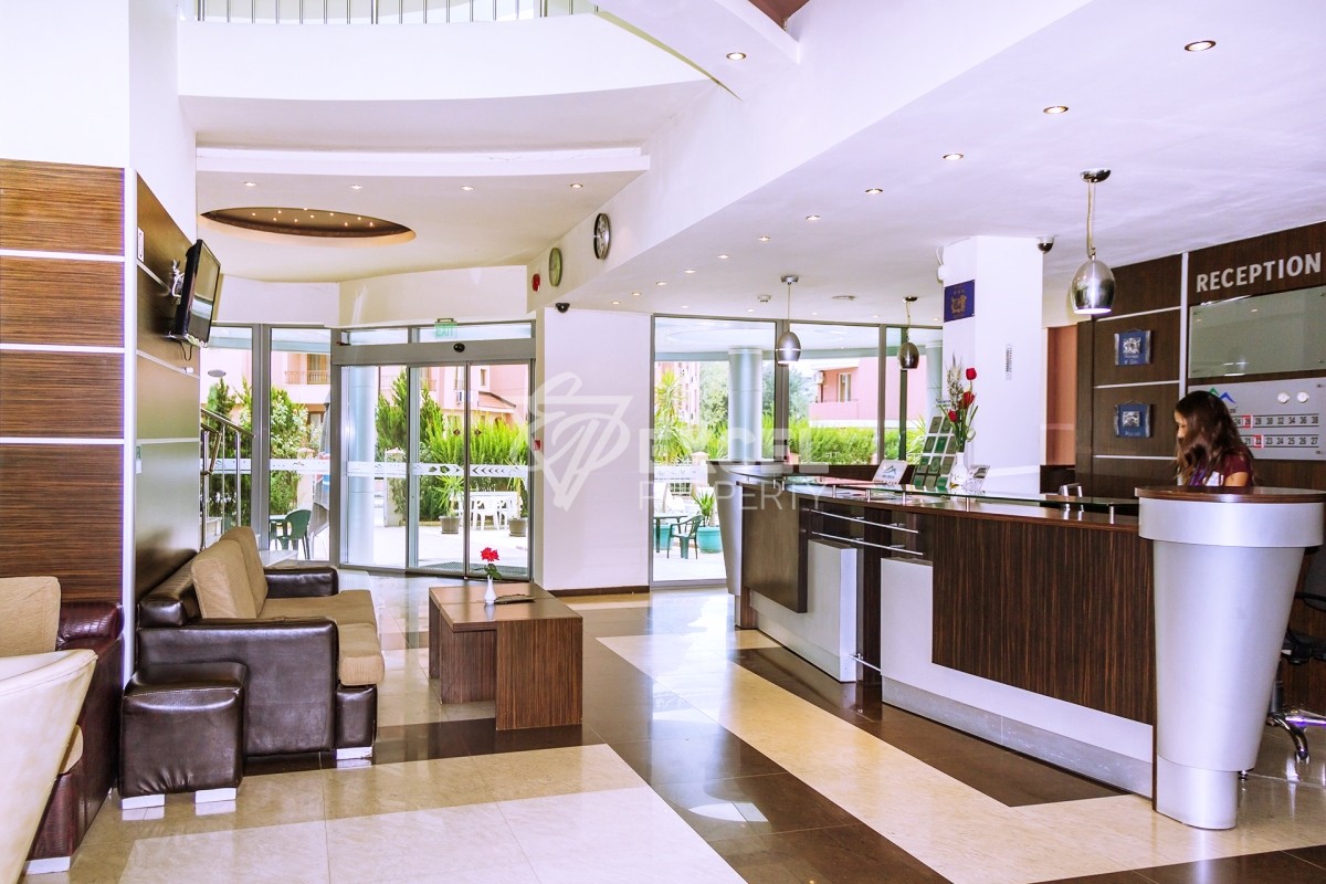 Комплексът има външен басейн, места за паркиране пред хотела, ресторант през летния период и видео наблюдение. Таксата поддръжка 250 Евро/годишно.