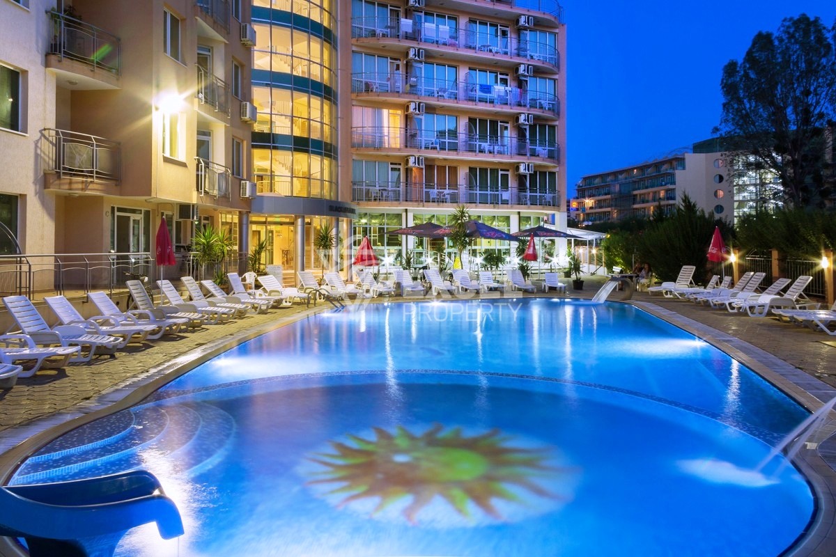 Предлагаме за продажба имот, разположен в северната част на курорта Слънчев Бряг, само на 600м от плажа, в близост до град Свети Влас и вилна зона Кошарица. Имотът е с обща площ от 69м2, разположен на първи етаж (не на земята ), в комплекс Блек Сий. Сградата е построена през 2010 година, има Акт 16 , има и асансьор.