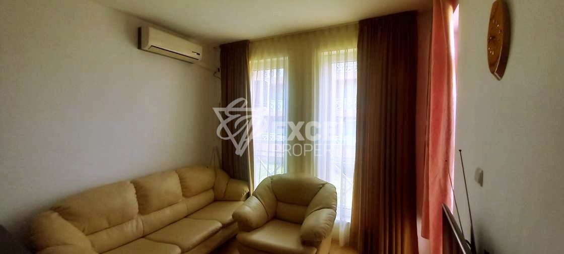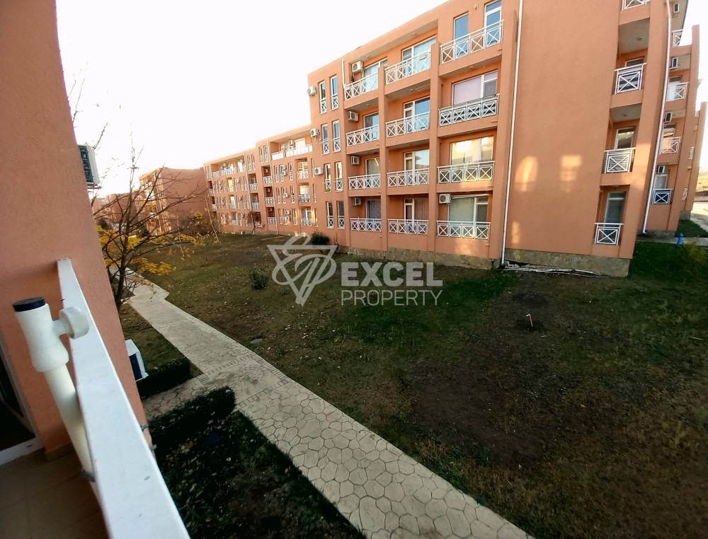 Ексел Пропърти предлага за продажба без комисионна от купувача, двустаен апартамент / с една спалня/ в затворен комплекс Съни Дей 6, недалеч от курортен комплекс Слънчев Бряг. Апартаментът се намира на 2-ри етаж от 4-ри, без асансьор. Напълно обзаведен и готов за живеене, обща площ на жилището- 42 кв.м. Имотът е в добро състояние, разполага с хол с кухненски бокс: ел. котлон, хладилник, кухненски шкафове, кана, пералня, има разтегателен диван за 2-ма човека, маса със столове- зона за хранене; баня обзаведена с мивка, бойлер и душ, както и една спалня и тераса, която е достъпна от двете стаи на апартамента. Апартаментът разполага с един климатик във всекидневната. Страхотно предложение за лятната Ви почивка, подходящ за 4 човека или семейство с деца. Ваканционният комплекс включва 46 четириетажни сгради, където са разположени 1 573 апартамента.