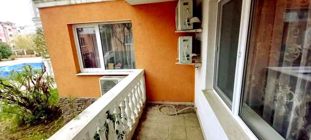 Имотът се състои от входно антре, дневна с обзаведен кухненски бокс и зона за хранене, една спалня, баня с тоалетна и балкон. Терасата е достъпна от страна на всекидневната, тя предлага гледка към басейна и зелените площи на комплекса. Апартаментът е оборудван с всичко необходимо, подходящ за целогодишно живеене или лятна почивка, или отдаване под наем. Има два климатика, пералня - в банята, разтегателен диван в хола, оборудвана кухня за пълноценен престой. Имотът е светъл и просторен, може да бъде закупен с цел последващо отдаване под наем. Комплекс Сий Даймънд (Sea Diamond) е разположен в западната част на курортния град Слънчев бряг, на тиха и спокойна улица. Инфраструктурата на района е добре организирана, с необходимите комуникации. Наблизо има супермаркет, магазини, ресторанти, кафенета, медицински център, аптека, летни атракции, автобусни спирки. Популярният плаж Какао бийч, е само на 5 мин пеша. Комплексът има АКТ 16