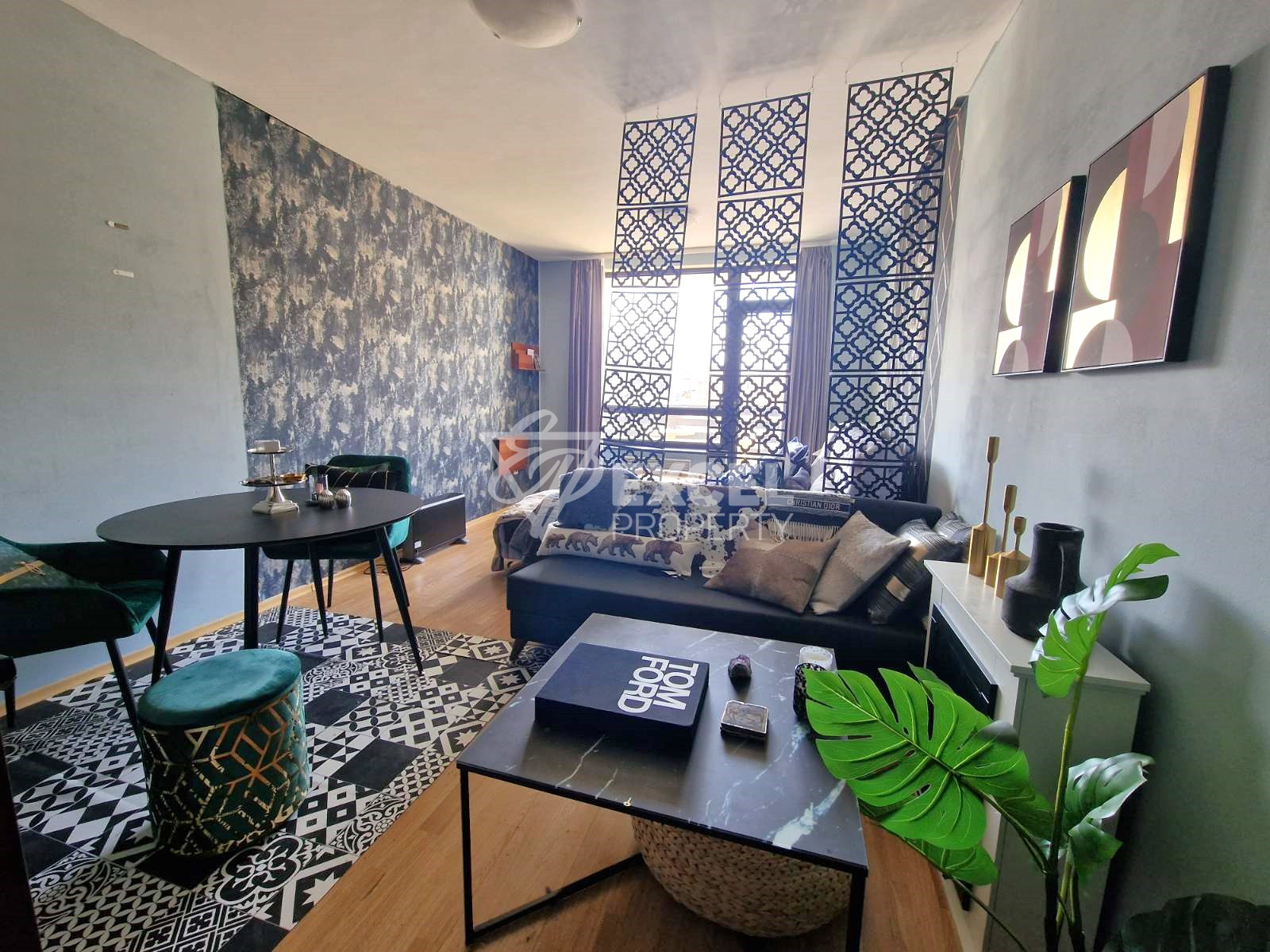 Имотът се намира на трети етаж и разполага с входно антре, просторна дневна с оборудвана кухненска зона, трапезарна част и кът за спане, баня с тоалетна и вана, балкон. Със стилен интериор и внимание към детайла, включени в продажната цена. Отоплението е на ток, чрез конвекторни радиатори. Имотът разполага с отделна партида за ток.