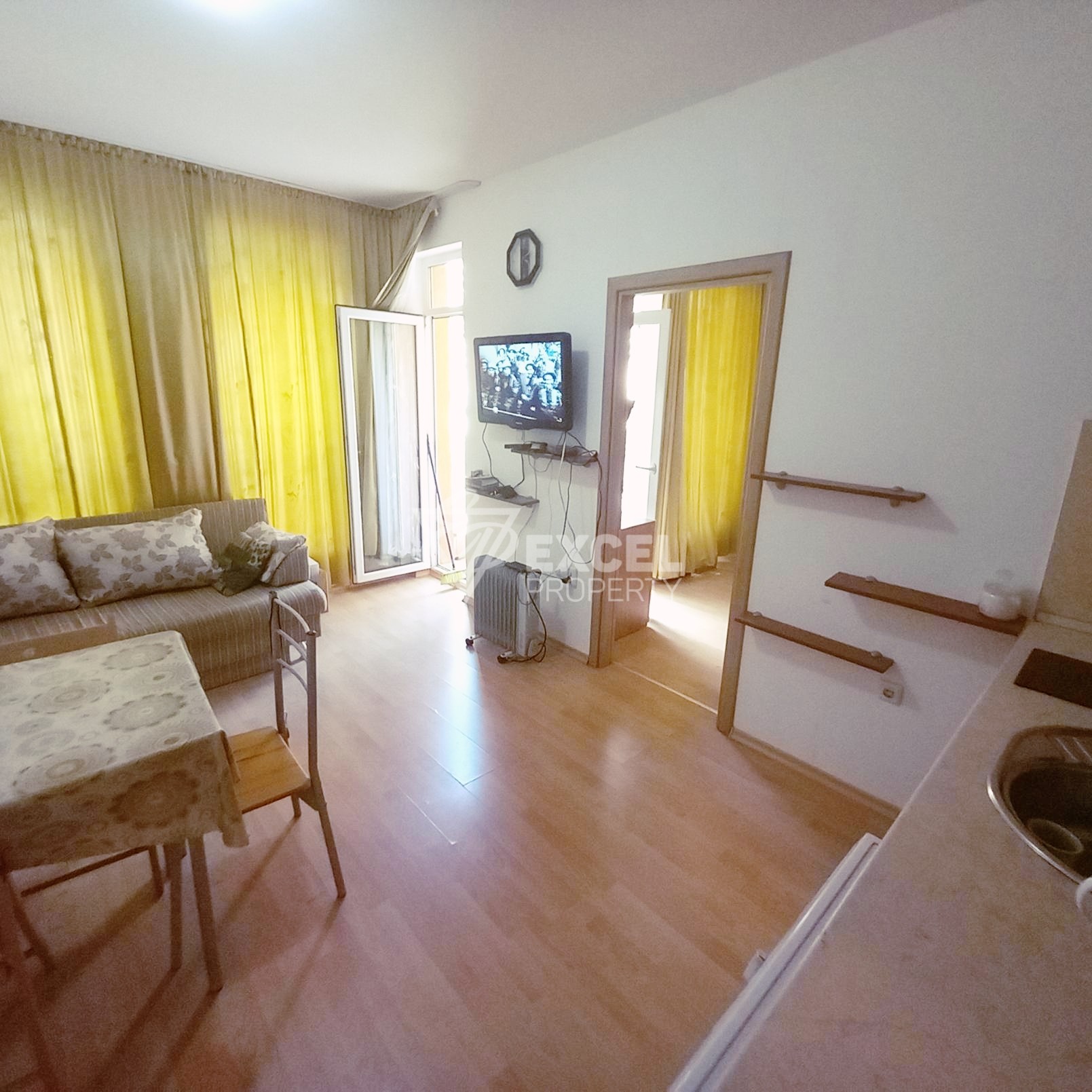 Предлагаме за продажба- без комисионна от купувача, обзаведен двустаен апартамент, разположен на 1-ви етаж в комплекс Sunny Day 6, който е от затворен тип и се намира на 3 км от плажа и предлага 6 басейна, комбинирани спортни игрища, мини голф, открит фитнес, сезонен ресторант и супермаркет, целогодишна охрана, паркинг, зелени площи и други развлечения. Комплексът работи целогодишно и е подходящ за постоянно живеене или лятна почивка.