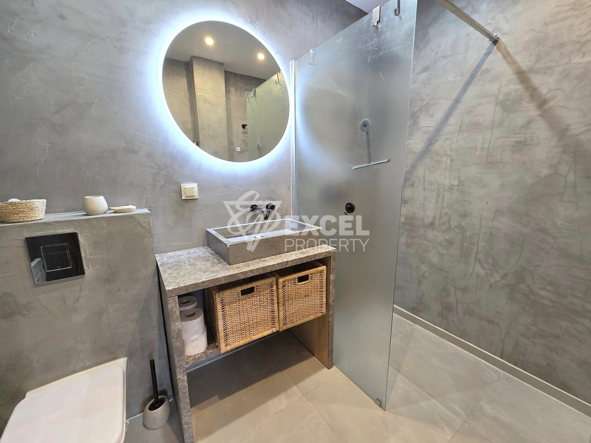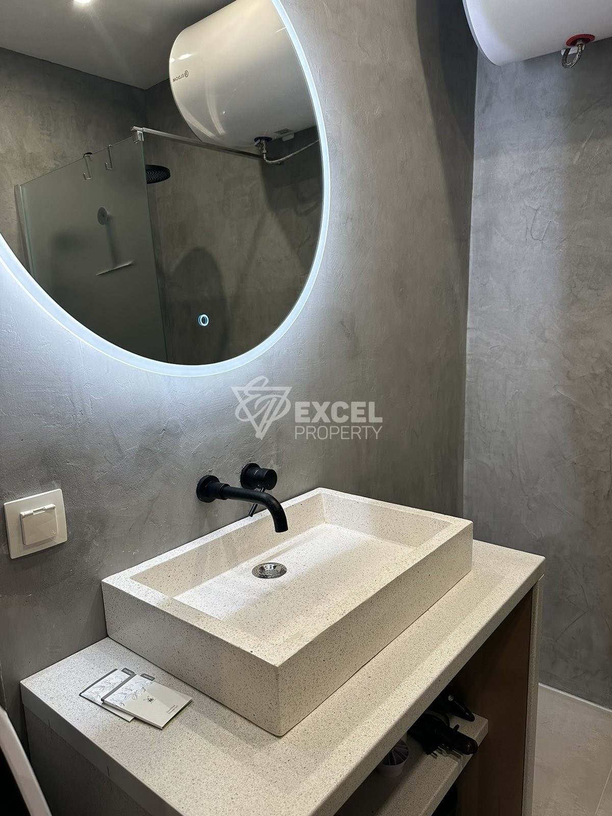 Ексел Пропърти има удоволствието да Ви предложи за продажба стилно обзаведен двустаен апартамент с камина и панорамна планинска гледка. Имотът е с ниска такса поддръжка (6 евро на кв.м.)! Отделни партиди за ток и вода!