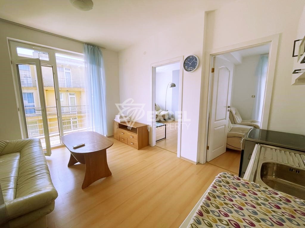 Ексел Пропърти предлага за продажба обзаведен и уютен апартамент с две спални с обща площ от 65,08 м2 намиращ се на 3-ти етаж в комплекс Сани Дей 5, в района на курортия град Слънчев Бряг, на около 3 км от морето.